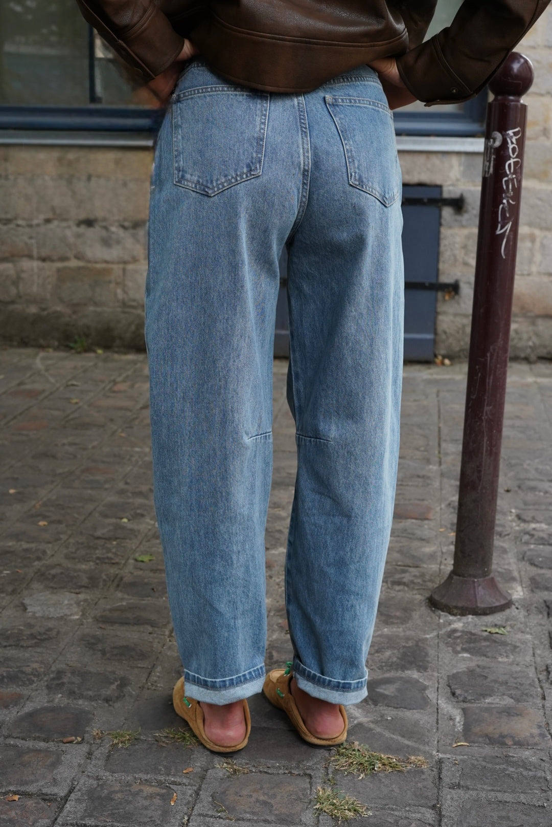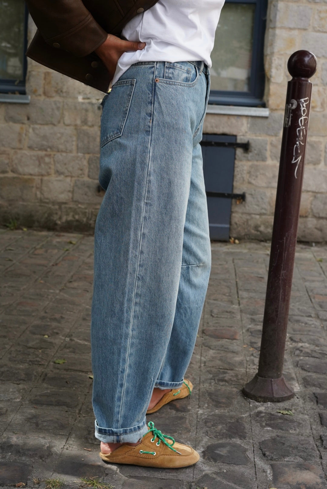 Découvrez la nouvelle coupe tendance de notre jean Léonce en denim bleu clair. Il adopte une forme structurée avec une jambe effet ballon pour une allure contemporaine et audacieuse.