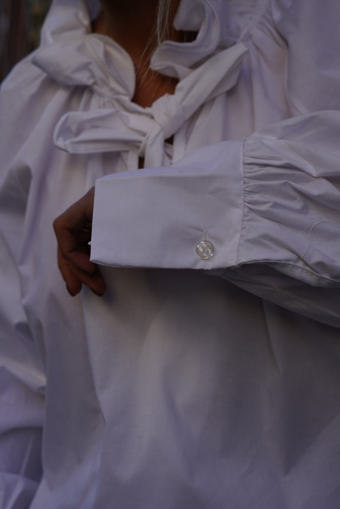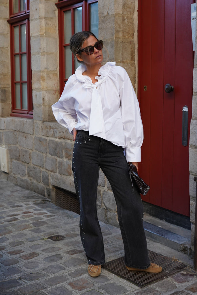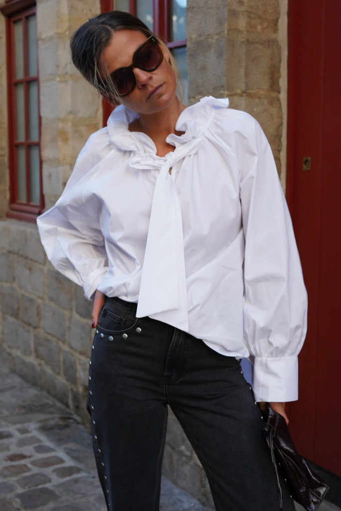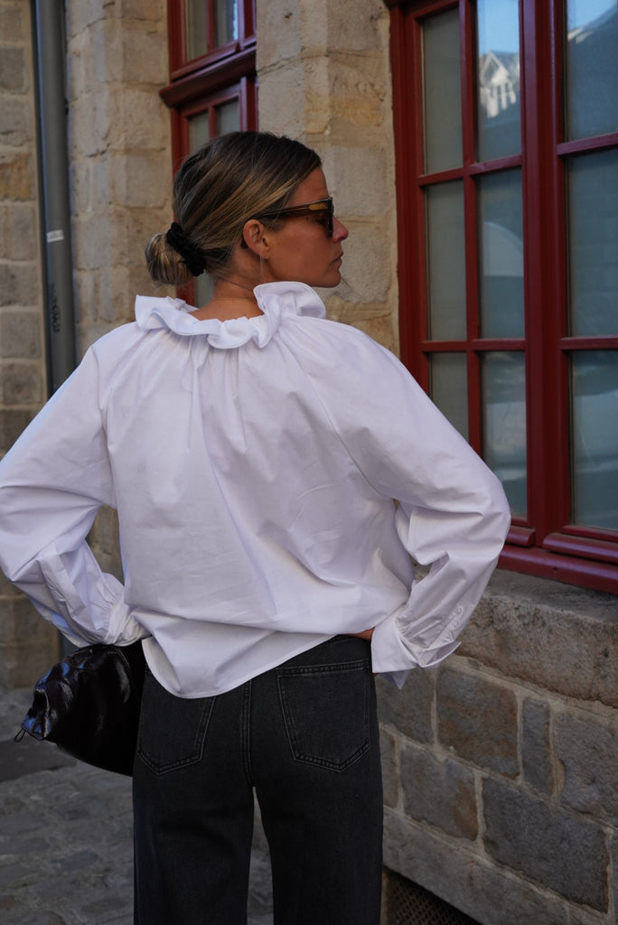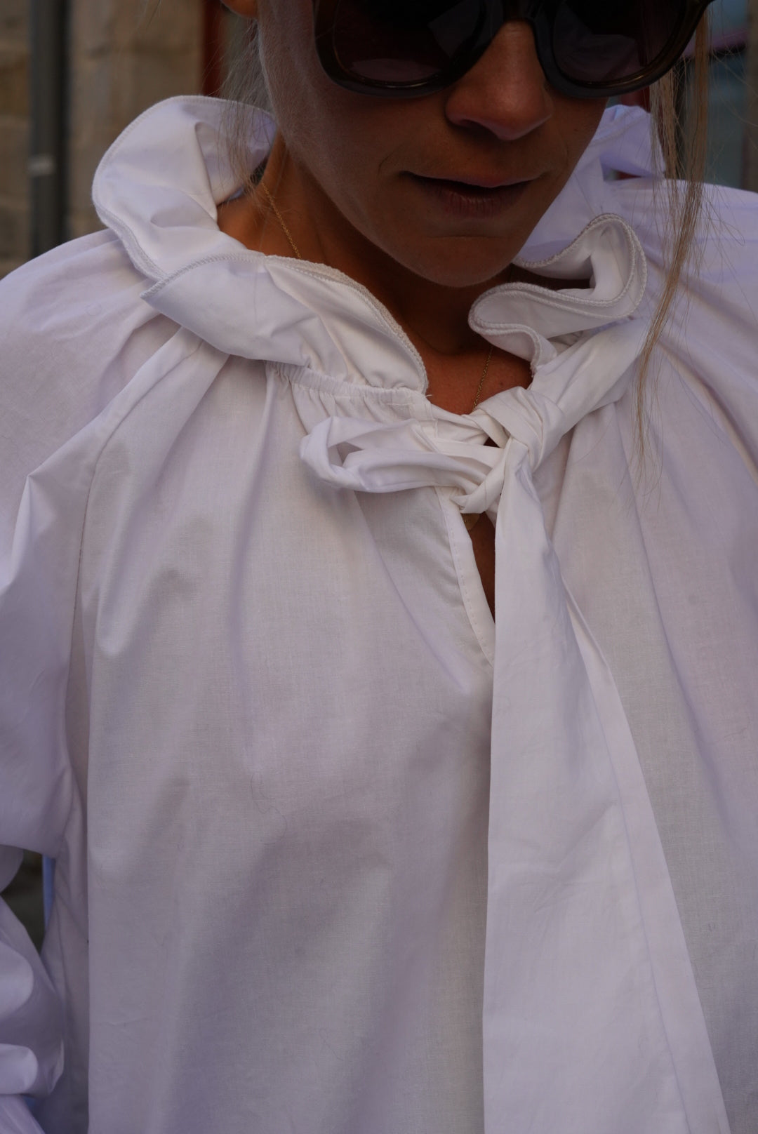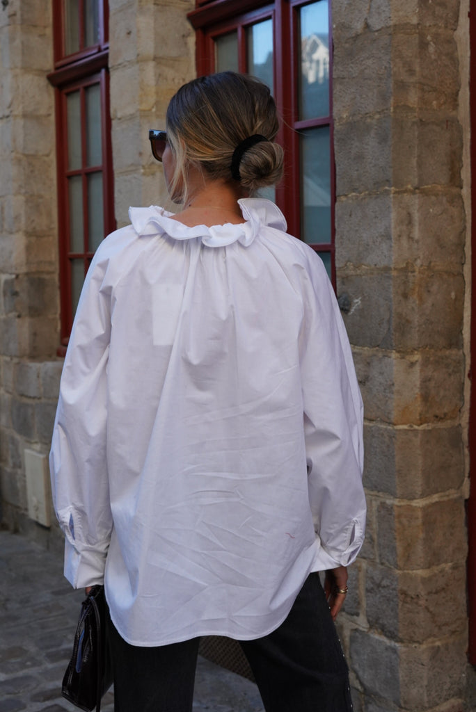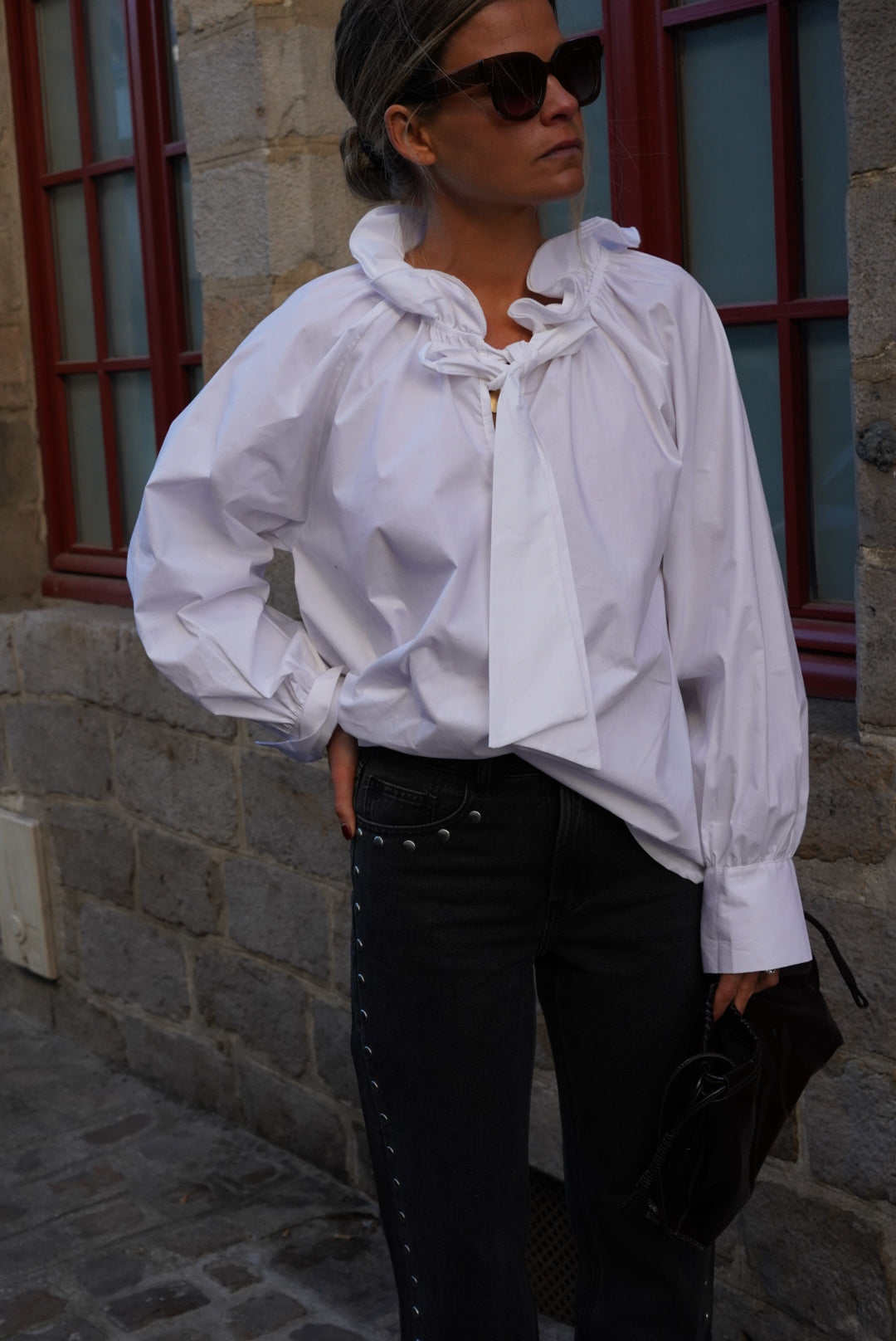 Laissez-vous séduire par le charme intemporel de cette blouse ample blanche unie, parfaite pour allier confort et raffinement.