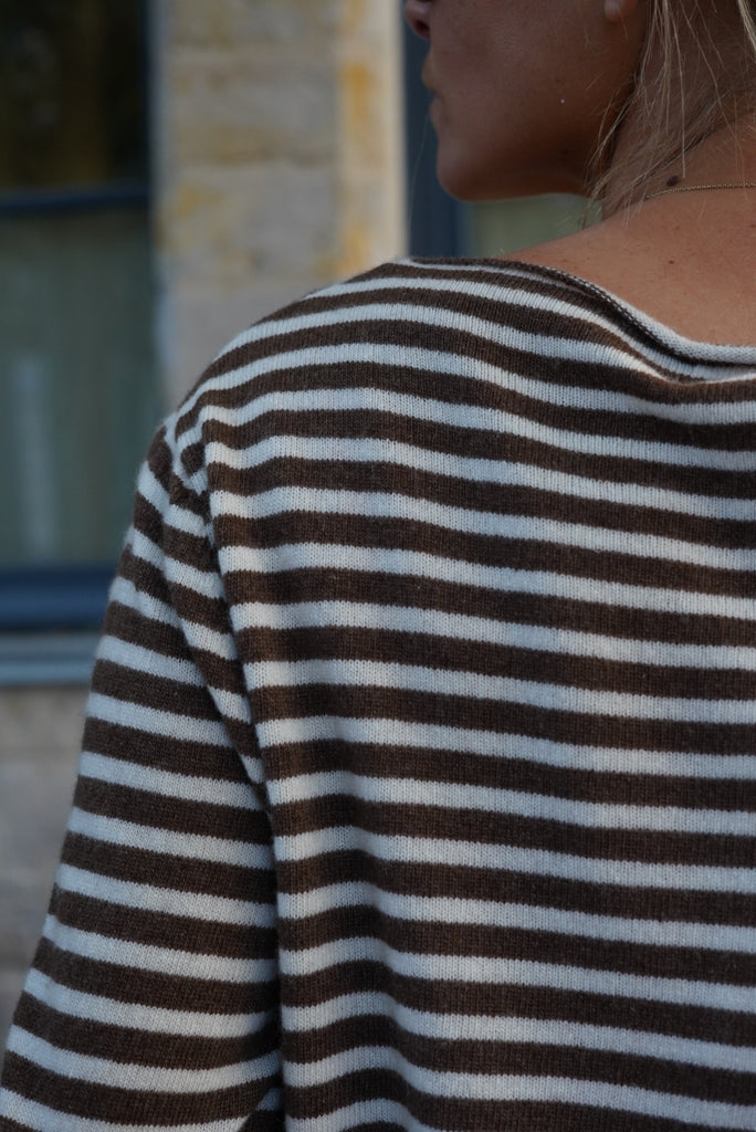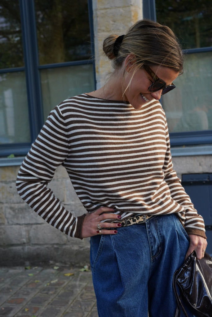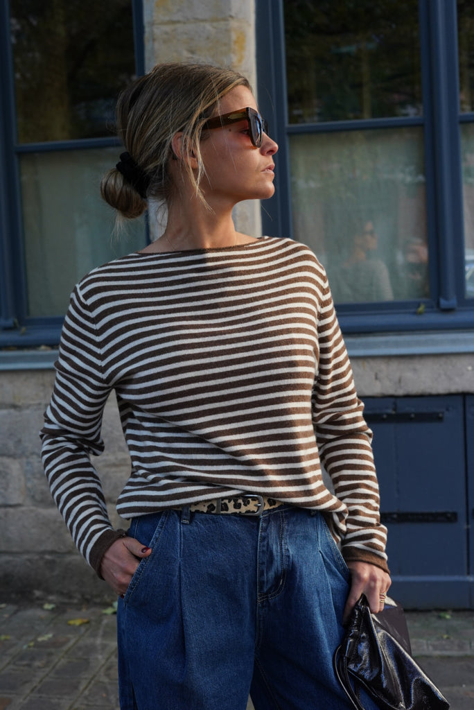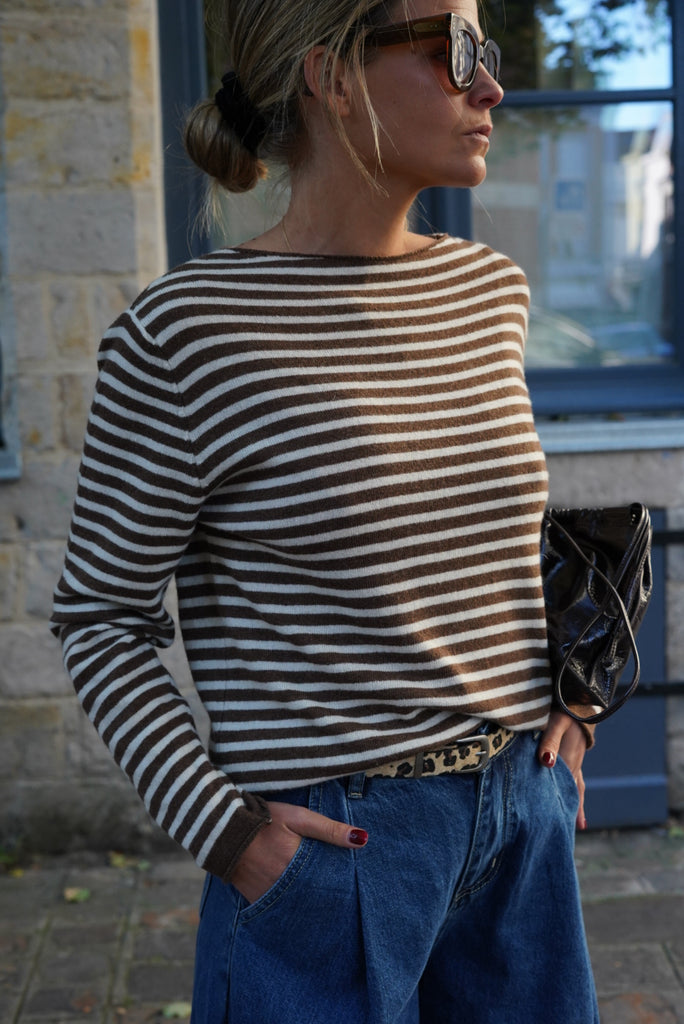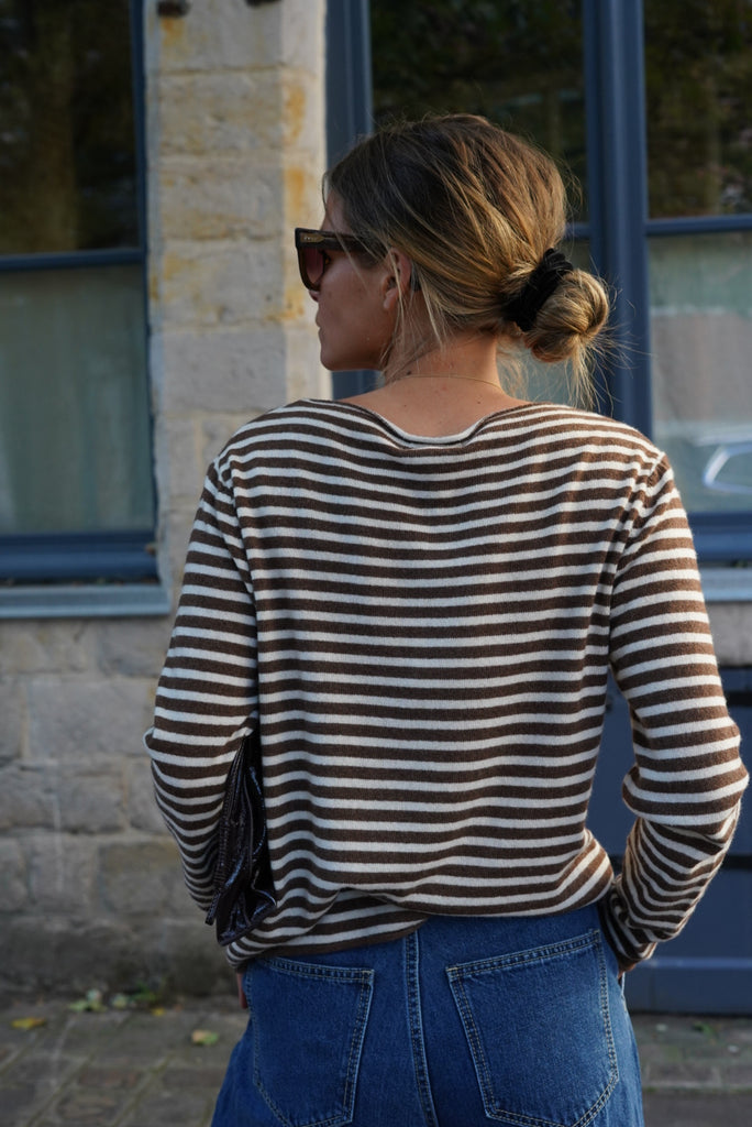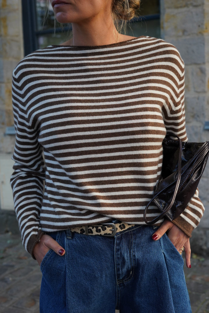 - Motif rayé marron et écru