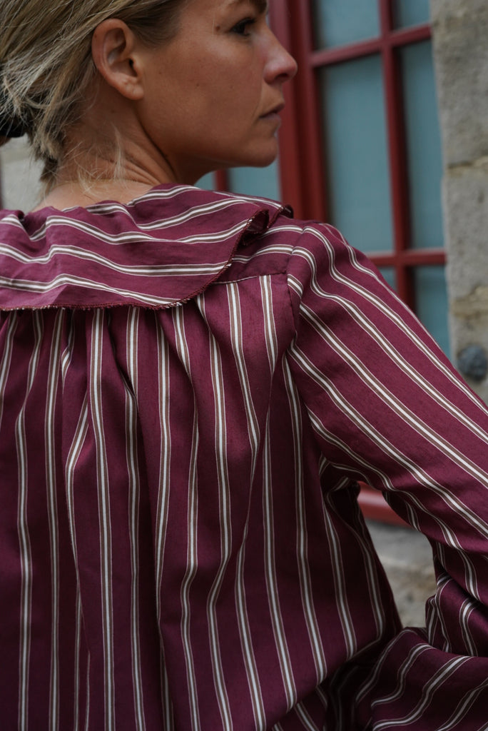 Idéale pour sublimer une silhouette moderne et féminine, la blouse Olympe séduit par ses volants raffinés et ses jolies rayures.