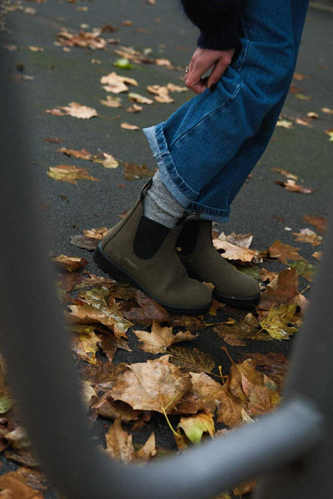 La Blundstone 2442 en nubuck huilé kaki affiche un charme authentique grâce à son effet mat unique. Polyvalentes, robustes et stylées, elle vous accompagnent partout avec allure et confort.