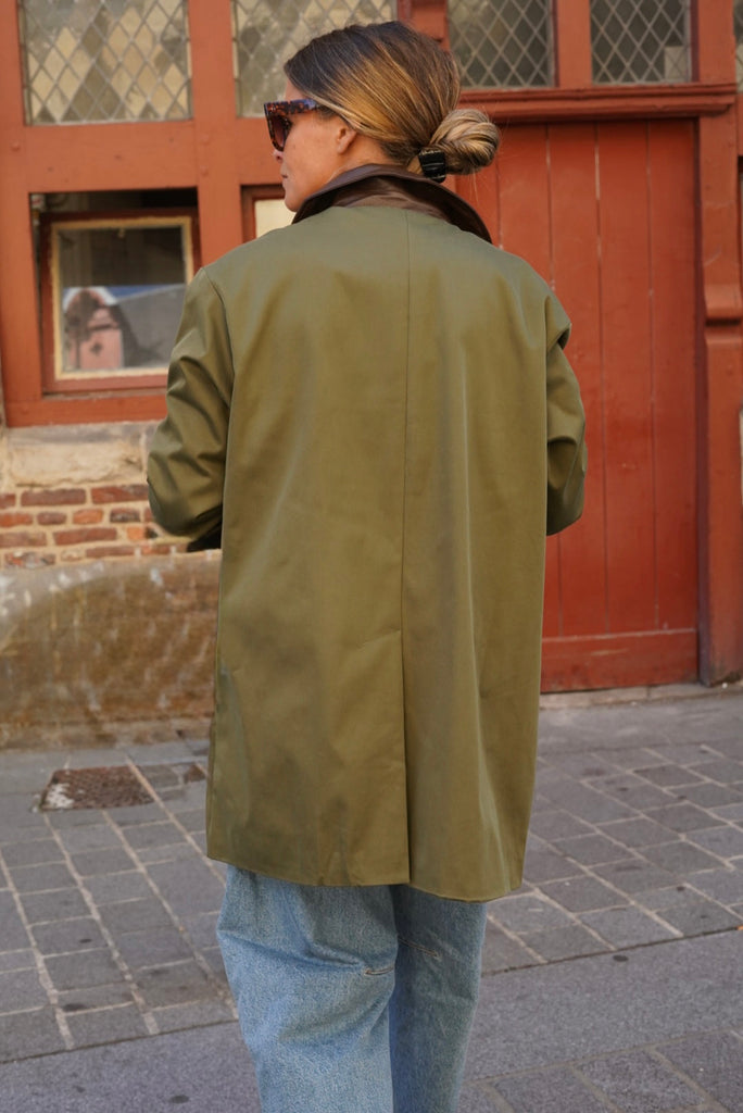 Rehaussez votre garde-robe avec notre veste mi-longue Constance kaki, un mélange parfait de fonctionnalité et de style.