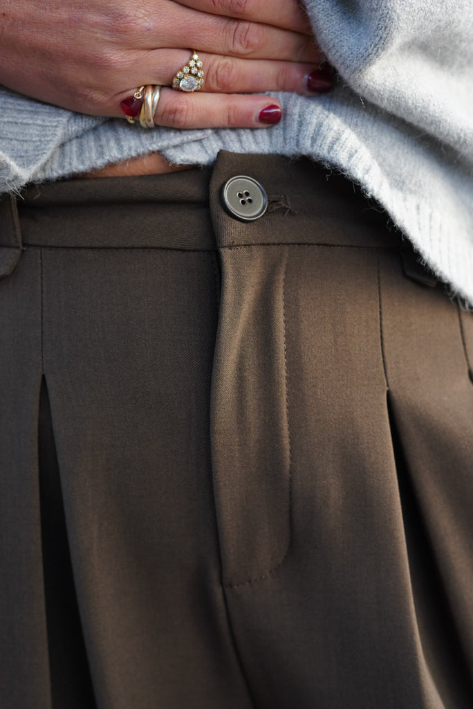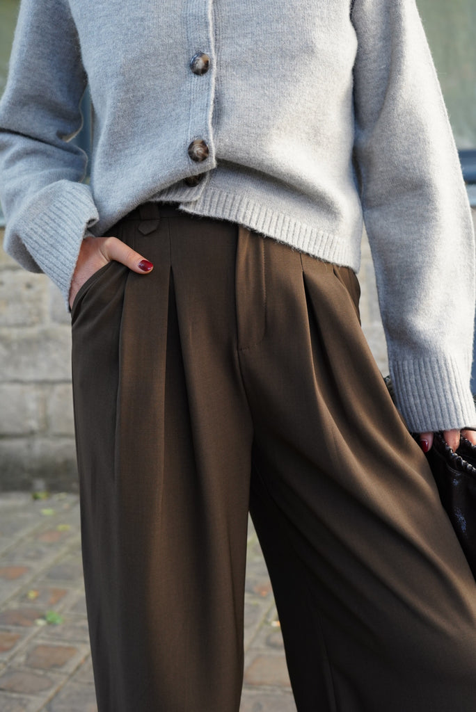 Un essentiel du vestiaire revisité avec une coupe moderne et élégante. Confectionné dans un tissu marron fluide et souple, le pantalon Zacharie offre un tombé impeccable et un style raffiné.