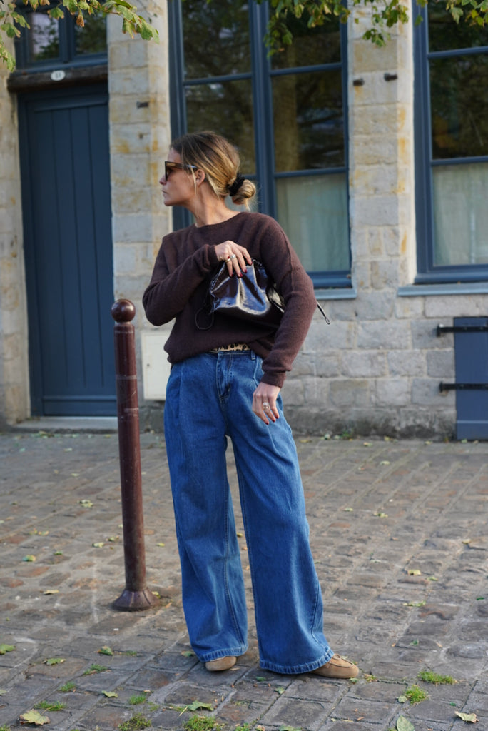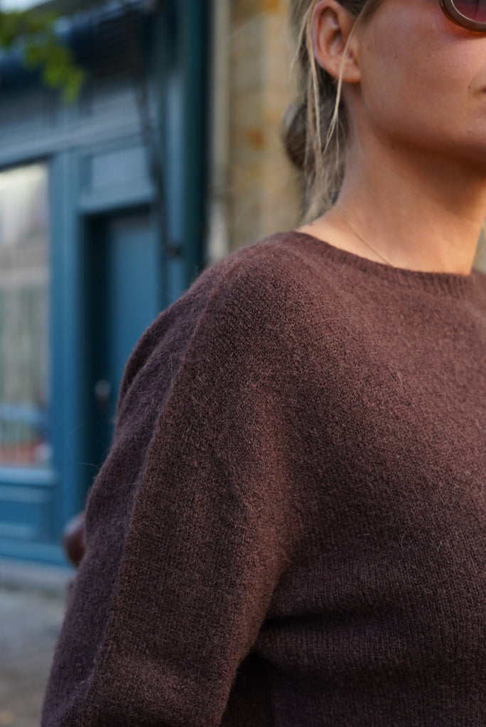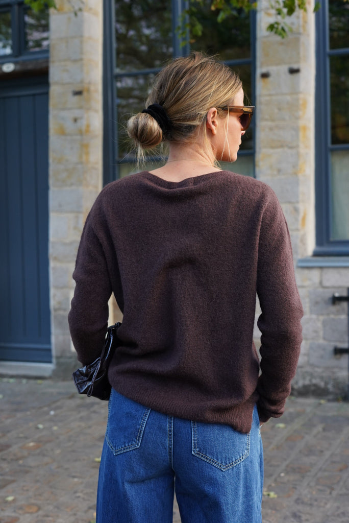 Ce pull chocolat tout doux en maille légère vous enveloppe de chaleur pour un look simple, élégant et sans effort : un essentiel du quotiden.